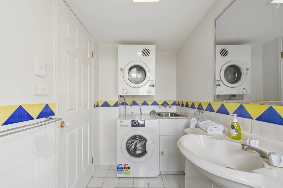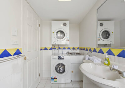 Equipped with washing machine, dryer, iron, and ironing board — perfect for longer stays.